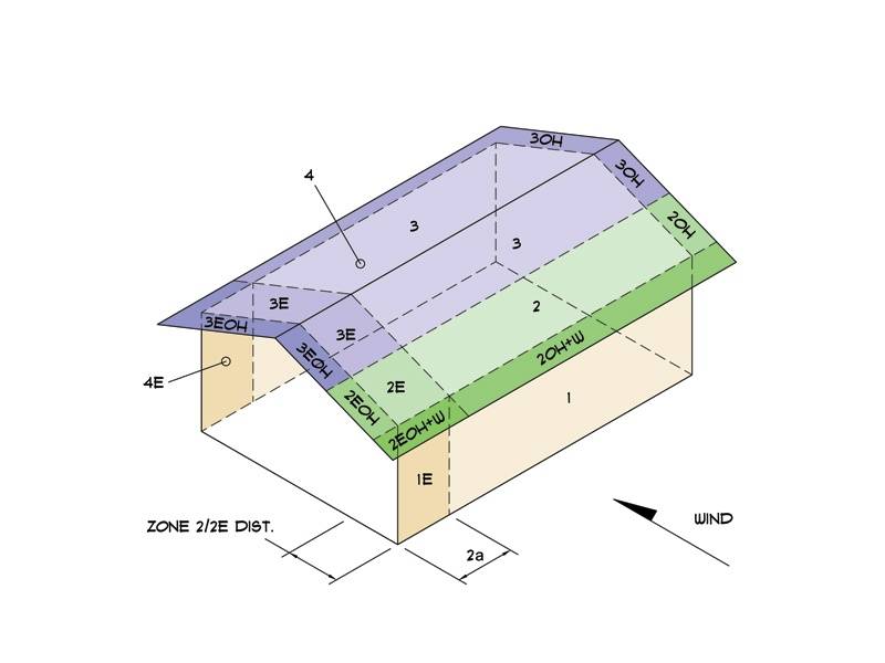 The remainder of zone 2 2e extending to the ridge line shall use the pressure coefficient gcpf for zone 3 3e.