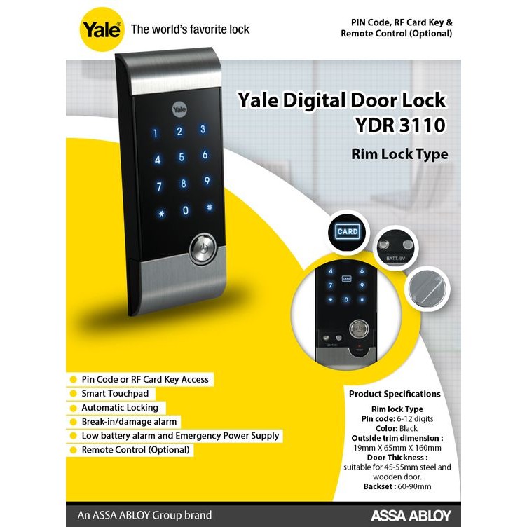 Yale Ymf30 Digital Door Lock Card Amp Amp Code Lazada